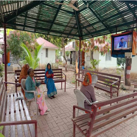संस्थेतील महिला टिव्ही पाहताना