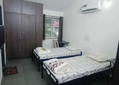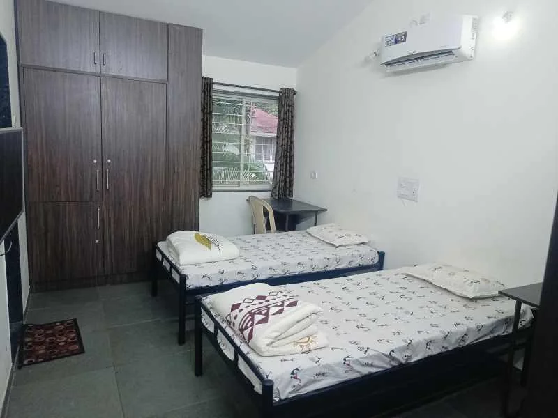- हवेशीर गार्डन साईडला व्हरांडा, छोटेसे किचन, फर्निचर, टीव्ही, फ्रिज प्रत्येक रूम मध्ये सेपरेट स्वच्छ बाथरूम + कमोड आणि इंटरकॉम ची उत्तम सोय आहे
